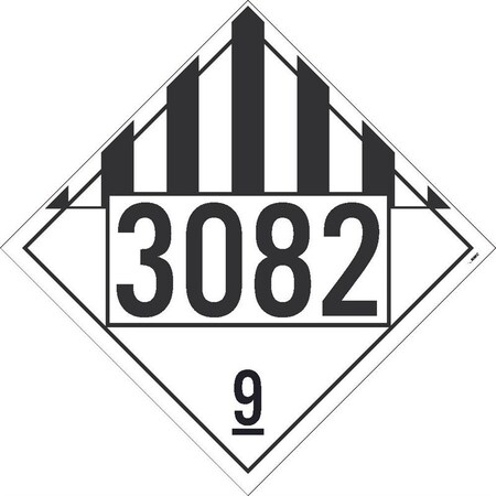 Placard, Miscellaneous Goods, Class 9, Four Digit 3082, 10.75X10.75, Removable Ps Vinyl, Pack 25