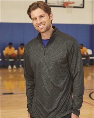 Badger B75685704 Line Embossed Quarter-Zip Long Sleeve T-Shirt, Red Line Embossed - Medium