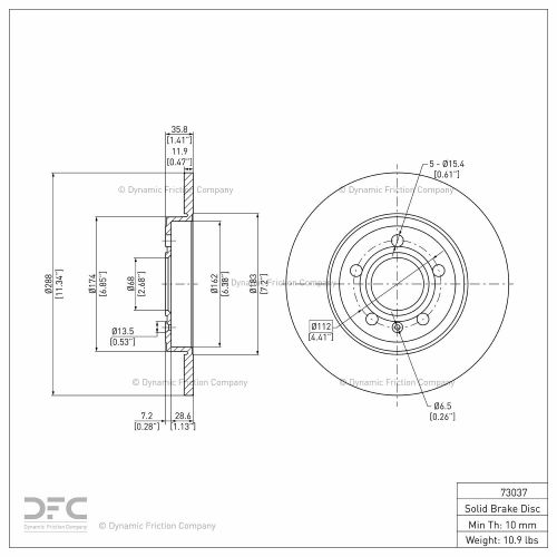 Dynamic Friction Company Rear GEOSPEC Coated Brake Rotor 604-73037 (1) For 2000-2009 Audi A4, 2005-2009 Audi A4 Quattro
