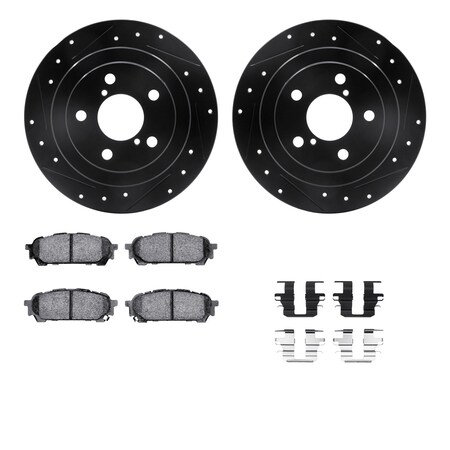 8312-13036, Rotors-Drilled, Slotted-BLK w/ 3000 Series Ceramic Brake Pads incl. Hardware, Zinc Coat