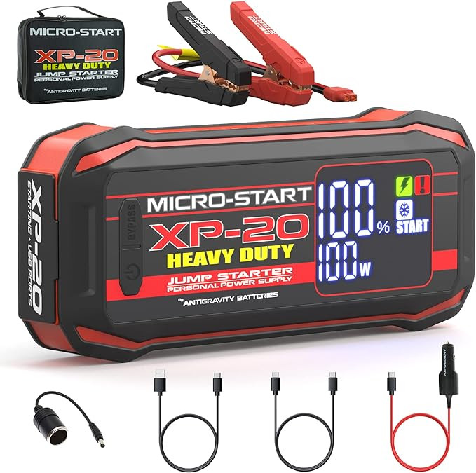 Take us on your next adventure! The ALL NEW MICRO-START XP-20-HD is our latest and greatest Jump Starters/Personal Power Supply products yet! They are simply the most powerful and compact at 9.5 x 4 x 2 inches (Most compact in the Industry). XP20-HD Jump Starters offer unrivaled performance, features and quality. Simply Charge them and take Portable Power and the ability to Jump Start your vehicles wherever you go. Jump-Start most Diesel Trucks up to 8L and gas engines up to 10 Liters! Charge & Power Laptops, 12V devices and USB devices (Apple or Windows), 930A starting current / 4650A peak, Massive Capacity of 24,000 mAh, Type-C PD 100w Ultra Fast Charging, Only 1 Hour Super Fast Recharging! Bright LED Flashlight built-in. Carry Case and all Accessories included