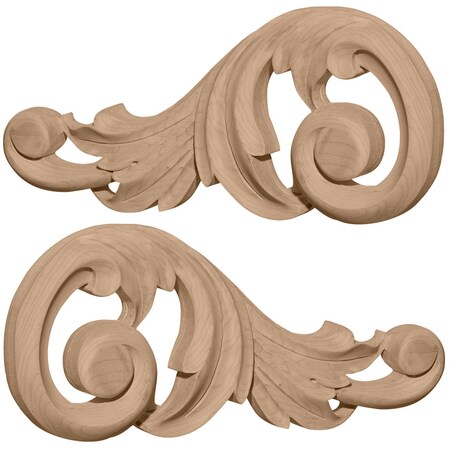 Ekena Millwork 11in. Wood Onlays - 11 1/4in.W x 5 1/8in.H x 1in.D (Each Side) Large Swaying Scrolls (Pair), Maple