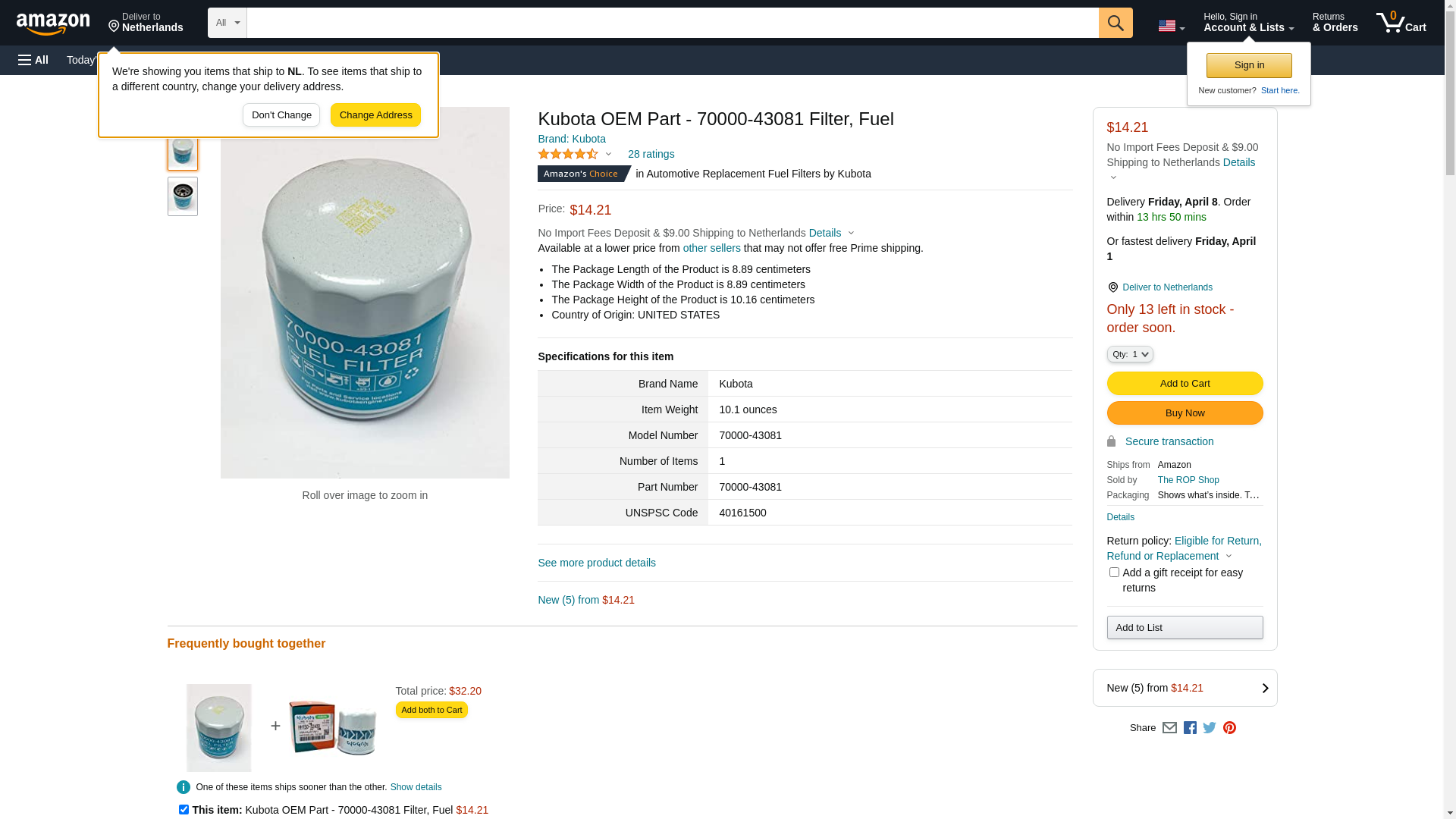 Kubota OEM Part - 70000-43081 Filter, Fuel