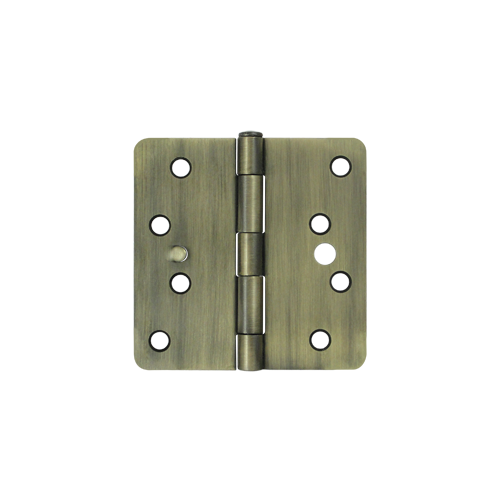 Deltana S44R4SEC5 4" Height X 1/4" Radius Plain Bearing Mortise Door Hinge Radius Corner W/Security Antique Brass