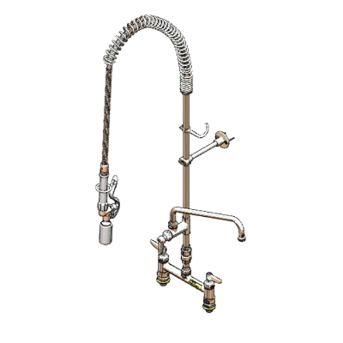 T&S Brass B-0123-12CRCVBC Pre-Rinse Units, Includes 8" c/c Deck Mount, Add-On Faucet, 00CC Inlets, B-0107-C, Vacuum Breaker