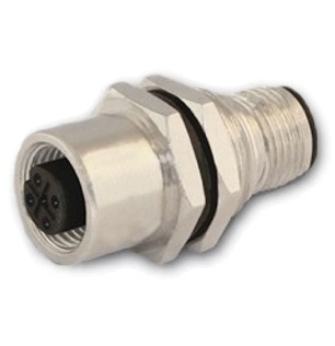 HTP 12MP8-12FP8-M16 M12 male/female panel mount adapter features 8 pins with an M16 thread size.