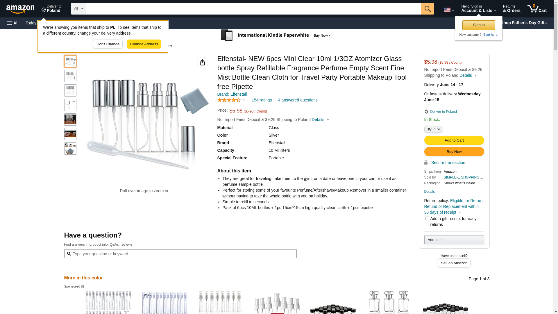 They are great for traveling, take them to the gym, on a date or leave one in your car, or use it as perfume sample bottle. Perfect for storing some of your favourite Perfume/Aftershave/Makeup Remover in a smaller container without having to take the whole bottle with you on holiday. Simple to refill in seconds A travel essential for both men and women. Material: Glass Package Include:6pcs 10ML Empty Bottle/Lot, 1PCS Elfenstall clean cloth 1pcs pipette