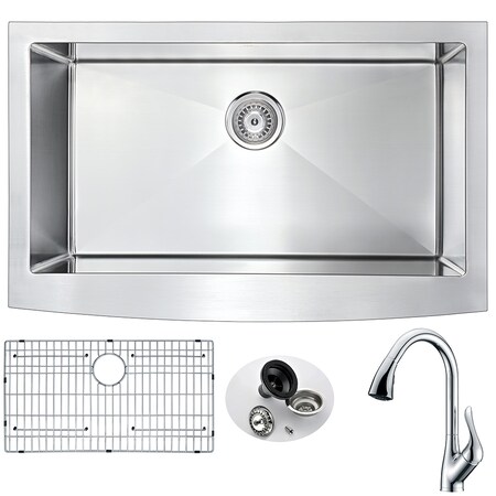 Anzzi, K33201A-031, , Elysian Farmhouse Stainless Steel 32 In 0 Hole Kitchen Sink And Faucet Set With Accent Faucet In Polished Chrome