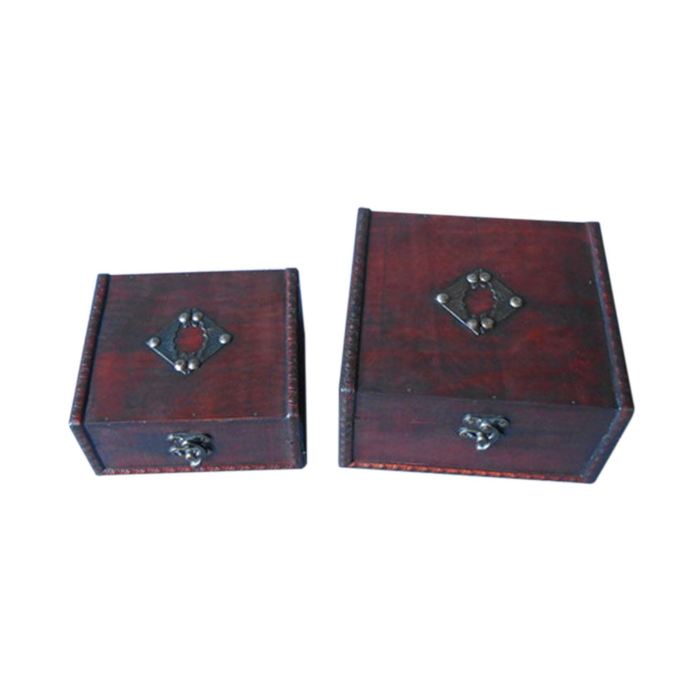 Mr. MJs Trading BM-W15-137 2 Piece Metal Medallion Flat Top Wood Decorative Box Set - Brown