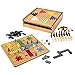 - Materials: Wood and plastic, Game boards and game pieces are self-contained