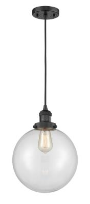 INNOVATIONS LIGHTING 201C-BK-G202-10-LED FRANKLIN RESTORATION X-LARGE BEACON 10 INCH ONE LIGHT CLEAR GLASS PENDANT,...