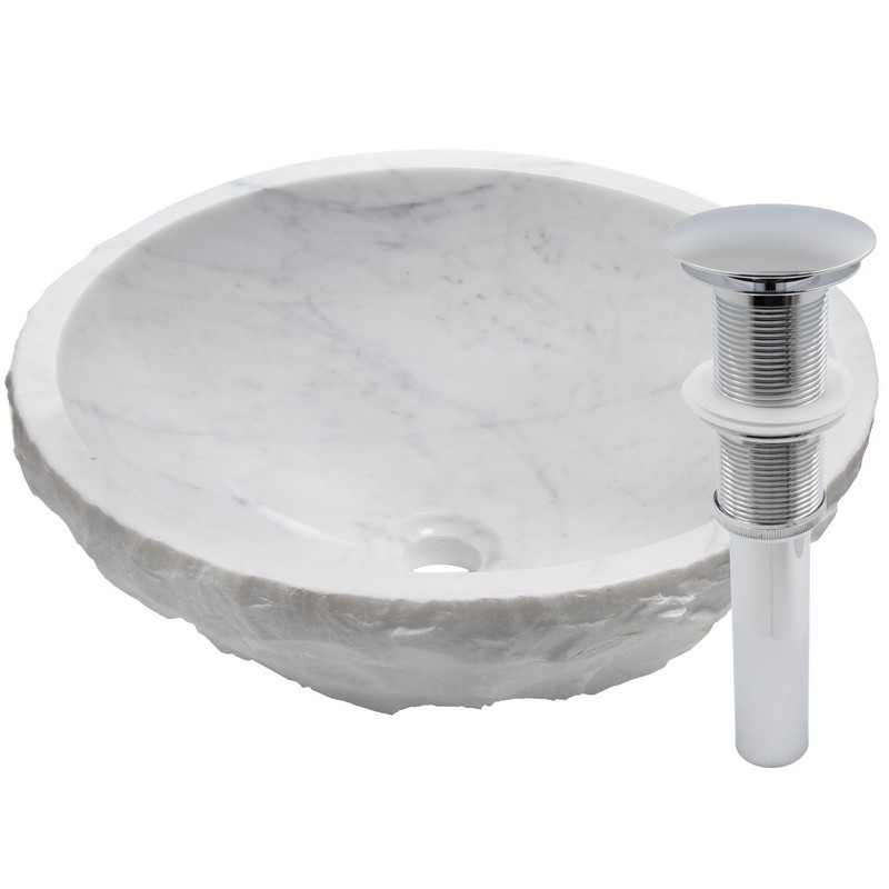 Natural Carrara Marble Stone Vessel Sink with Chrome Drain and Sealer