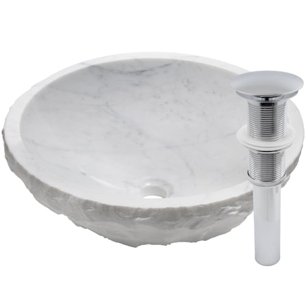 NOVATTO NOSV-CWNCH 17 INCH CARRERA WHITE MARBLE STONE VESSEL SINK WITH CHISELED EXTERIOR, CHROME