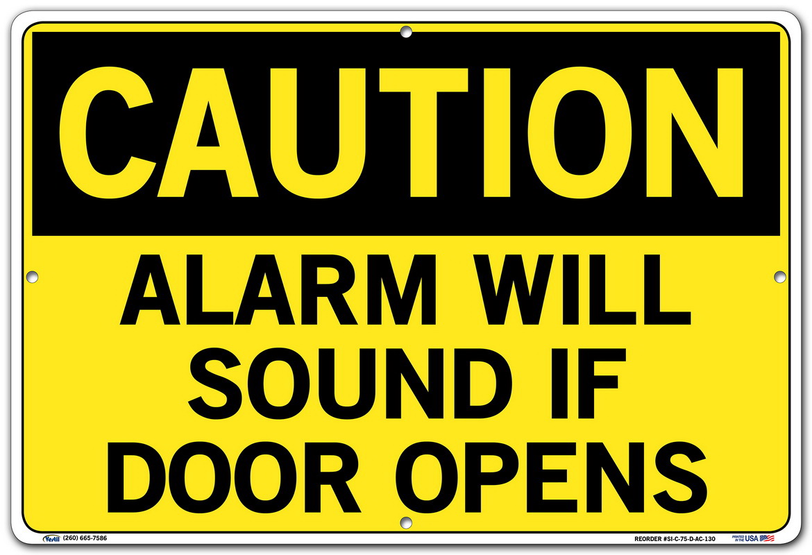Vestil SI-C-75-D-AC-130 ALARM WILL SOUND IF DOOR OPENS Caution Sign, Aluminum Composite, 0.130" Overall Size, 18.5" W x 12.5" H