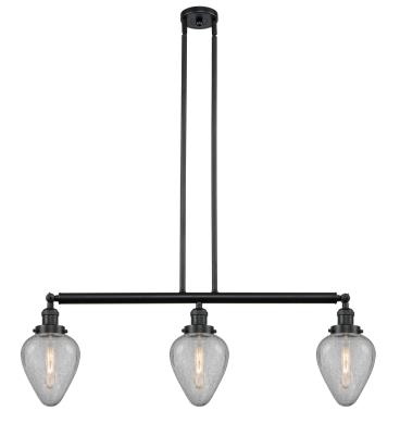 INNOVATIONS LIGHTING 213-BK-G165 FRANKLIN RESTORATION GENESEO 3 LIGHT 38 INCH CLEAR CRACKLE GLASS ISLAND LIGHT, MATTE...