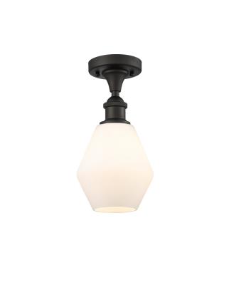 INNOVATIONS 516-1C-OB-G651-6-LED 1-Light Semi-Flush Mount Oil Rubbed Bronze. Collection: Ballston. Style: Nautiical, Art Nouveau, Transitional, Modern. Metal Finish: Oil Rubbed Bronze. Metal Finish (Canopy/Backplate): Oil Rubbed Bronze. Material: Steel, Cast Brass, Glass. Dimension(in): 11.5(H) x 6(W) x 6(Dia). Bulb: (1)6W Medium Base,Dimmable(Not Included). Maximum Wattage Per Socket: 100. Voltage: 120. Color Temperature (Kelvin): 2700. CRI: 82. Lumens: 600. Glass Shade Description: Cased Matte White Cindyrella 6". Glass or Metal Shade Color: Cased Matte White. Shade Material: Glass. Glass Type: Frosted. Shade Shape: Geometric. Shade Dimension(in): 6(W) x 6.5(H). Fitter Measurement (Glass Or Metal Shade Fitter Size): Neckless with a 2.125 inch Hole. Canopy Dimension(in): 4.5(Dia) x 0.75(H). Sloped Ceiling Compatible: No. California Proposition 65 Warning Required: Yes. UL & ETL Certification: Damp Location.