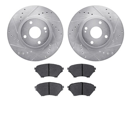 Dynamic Friction Company Front Brake Rotors Drilled and Slotted Silver with 5000 Advanced Brake Pads - 7502-80023