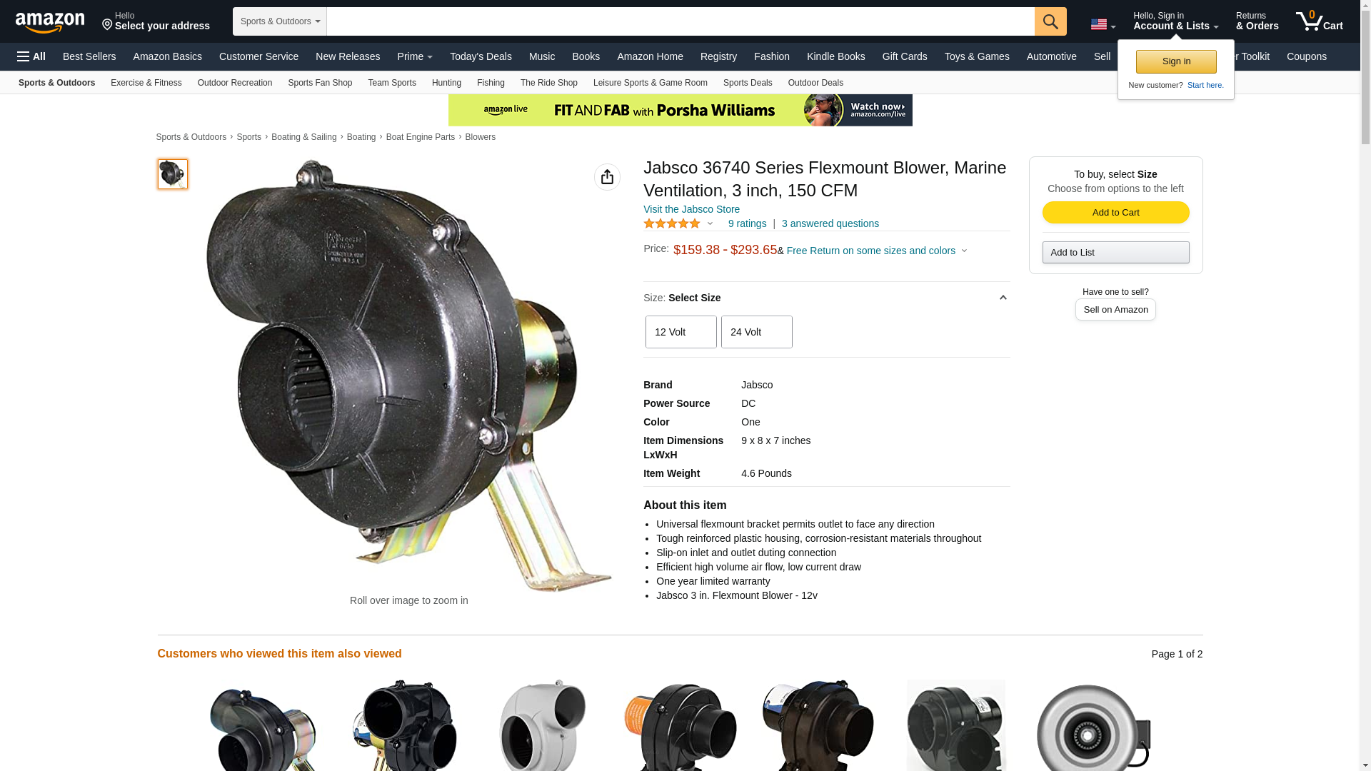 Jabsco 3in. Flexmount blower 150 cfm 24v over $150