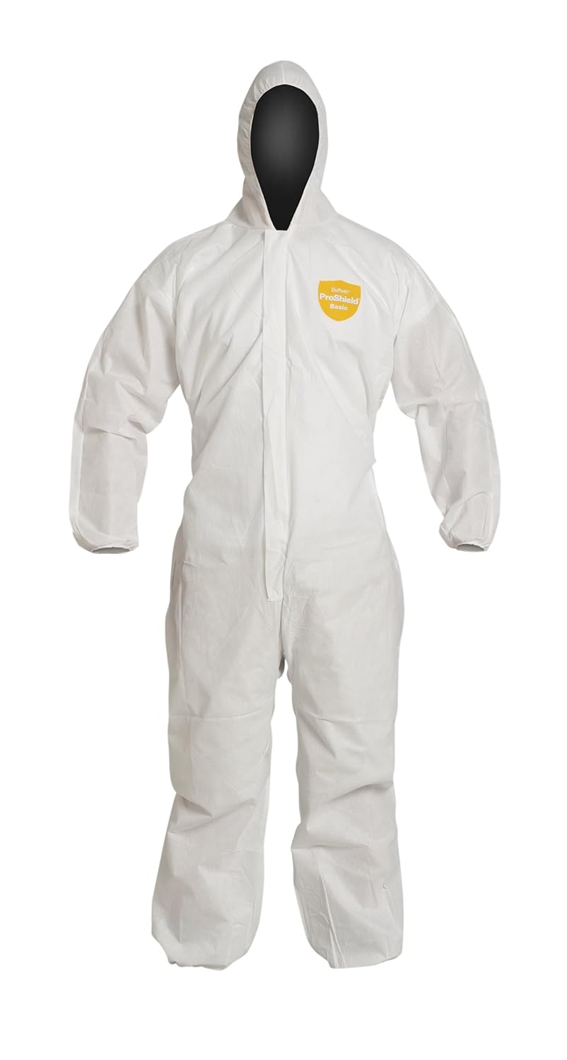 DuPont - PB127SWH3X002500 ProShield 10 PB127S Disposable Protective Coverall with Standard Fit Hood, Elastic Cuff and Ankles, White, 3X-Large (Pack of 25)