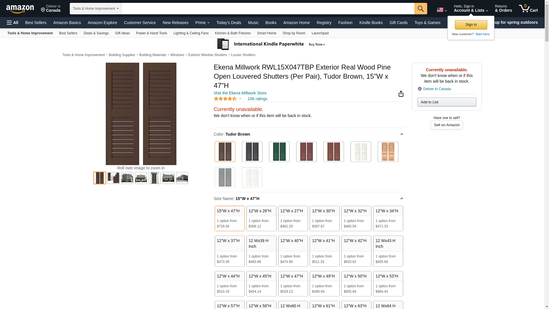 Ekena Millwork RWL15X047TBP Exterior Real Wood Pine Open Louvered Shutters (Per Pair), Tudor Brown, 15"W x 47"H
