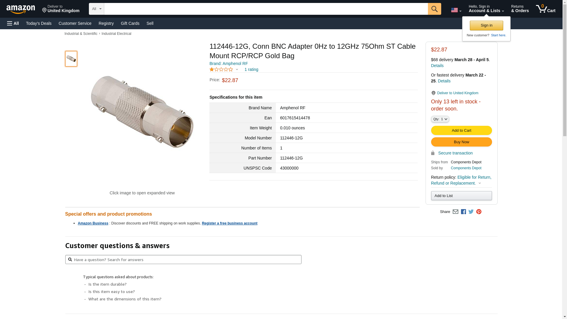 Brand: Amphenol RF