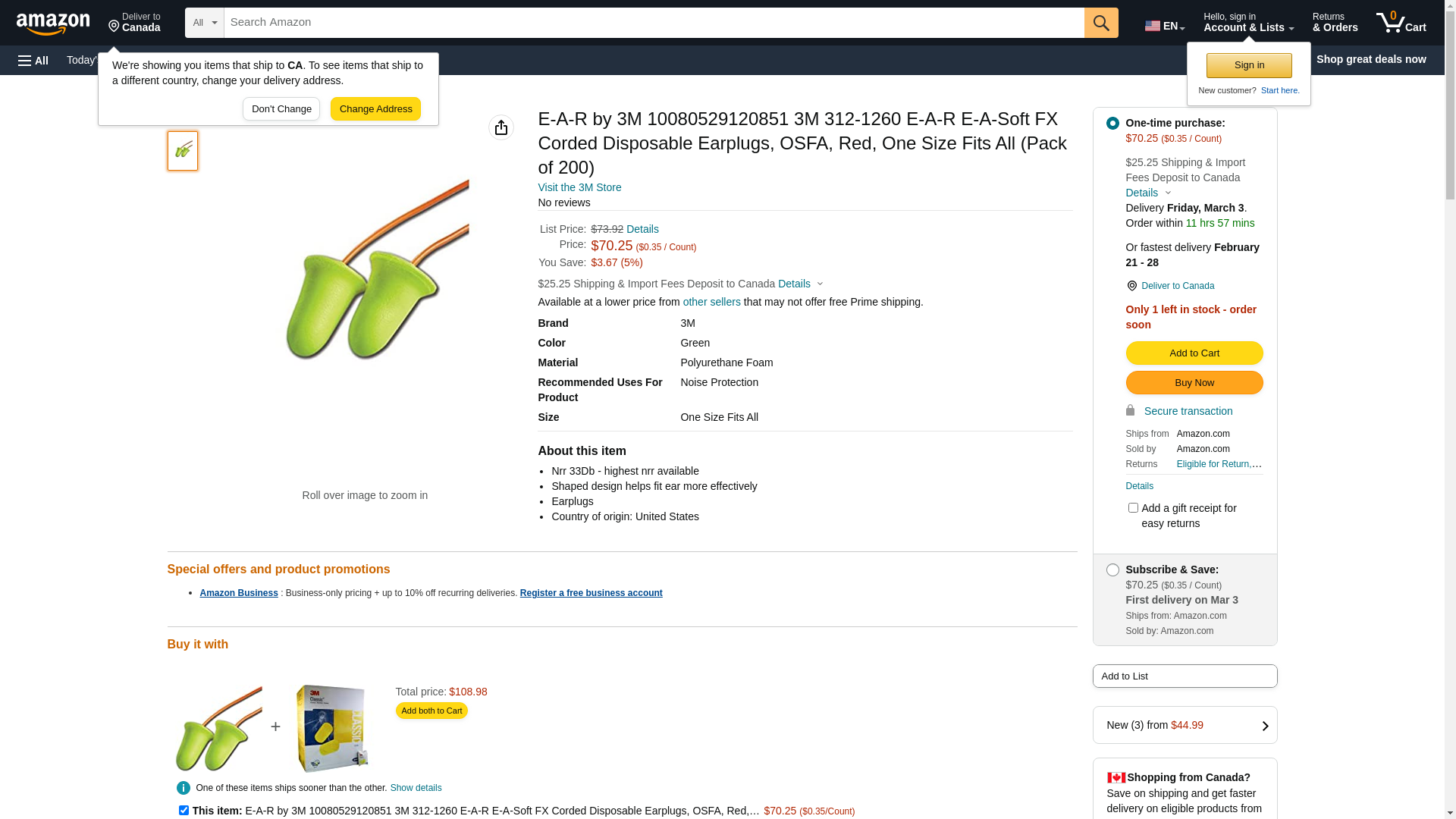 3M E-A-R by 3M 10080529120851 3M 312-1260 E-A-R E-A-Soft FX Corded Disposable Earplugs, OSFA, Red, One Size Fits All (Pack of 200) Green