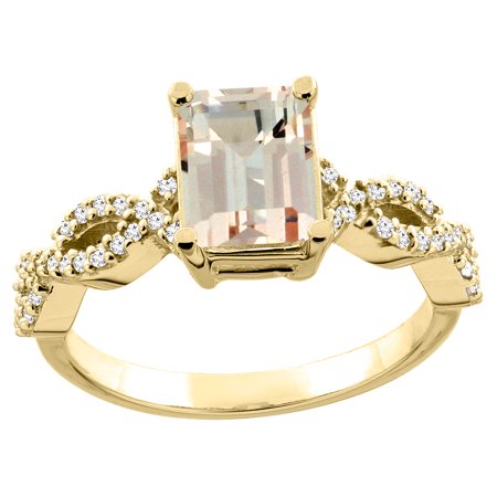 10K White/Yellow Gold/Yellow Gold Natural Morganite Ring Octagon 8x6mm Diamond Accent, sizes 5 - 10