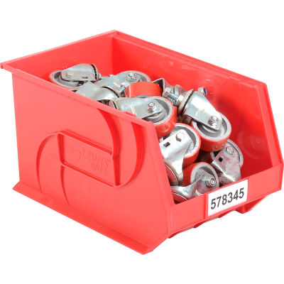 LEWISBins Plastic Stacking Bin, 11" W x 18" D x 10" H, Red - Lot of 4