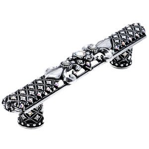 Versailles Collection - 5" Centers Large Pull Fleur De Lys With Swarovski Crystals And Decorative Column Feet in Antique Brass with Aurora Borealis by Carpe Diem Hardware - 7638-3-AB | Knobs 4 Less