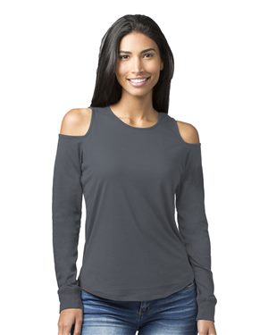 Boxercraft B11903592 Womens Cold Shoulder Long Sleeve T-Shirt, Granite - Extra Small
