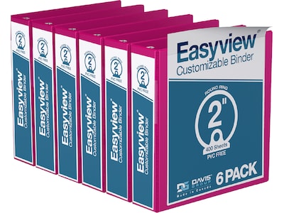 Davis Group Easyview Premium 2" 3-Ring View Binders, Pink, 6/Pack (8413-43-06) | Quill.com