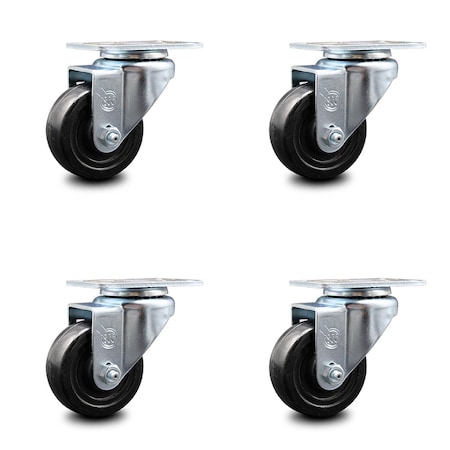 3 Inch Hard Rubber Wheel Swivel Top Plate Caster Set
