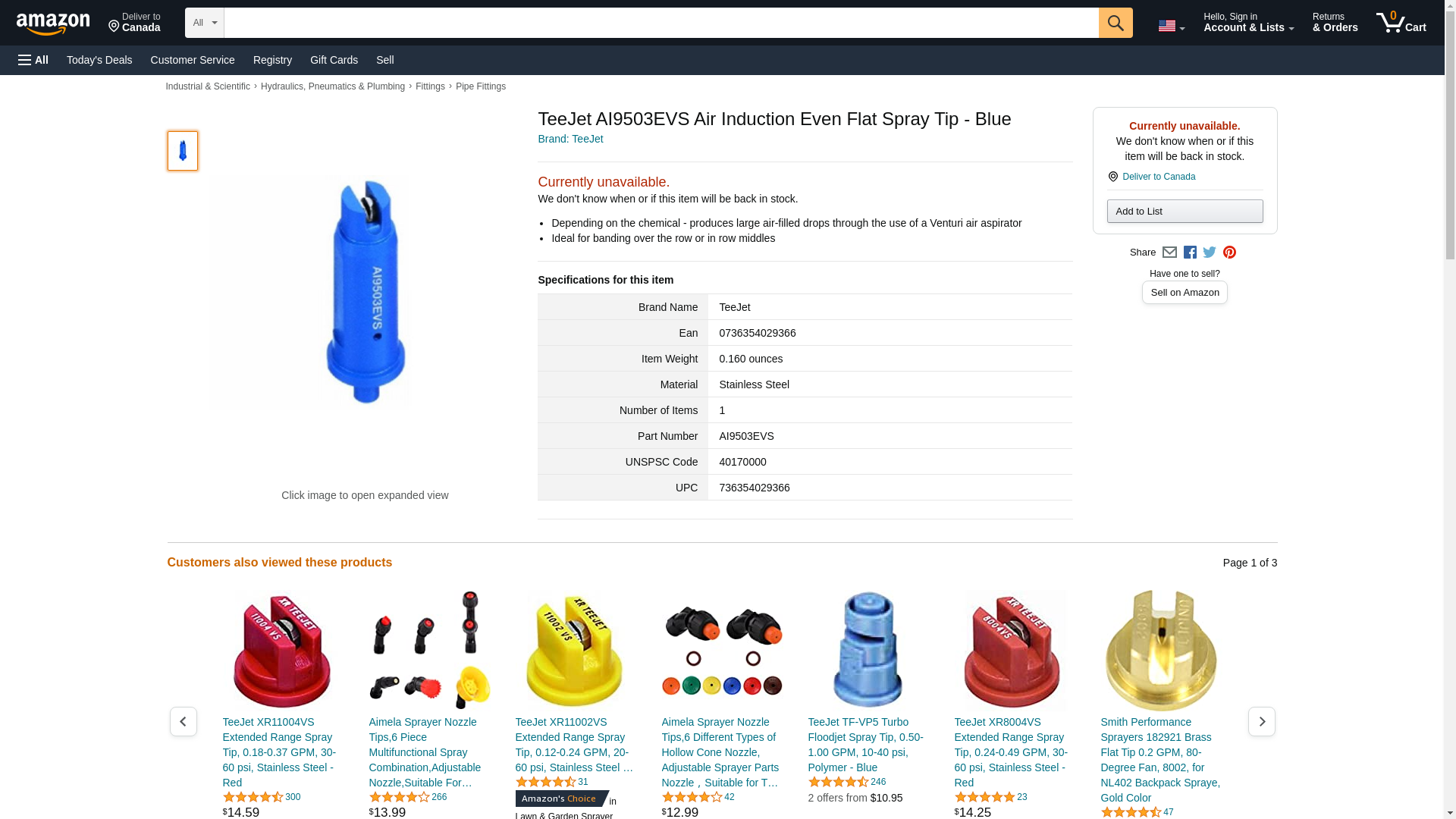 - See Chart in Pictures for PSI Ratings! Air Induction Even Flat Spry Tip. TeeJet AI9503EVS VisiFlo. Spray Angle: 95 degrees. Color: Blue; Flat fan spray pattern. 0.3 GPM @ 40 PSI; 30-60 PSI pressure range. Stainless steel core with VisiFlo color-coding. Larger droplets for less drift. Depending on the usage, produces large air-filled drops through the use of a Venture air aspirator. Ideal for banding over the row or in row middles.
