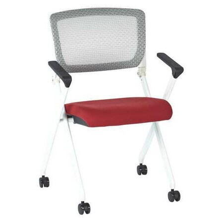 Folding Chair With Screen Back and Rouge Fabric Mesh Seat in White Finish Frame. Specification: Breathable Mesh Back & Fabric Mesh Seat Seat Available in your choice Fun Colors Fabric White Finish Frame with Dual Wheel Carpet Casters Horizontal NestingDimensions: Depth24, Height32, Width25