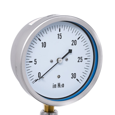 LP1-SB-404-30 PIC Gauges Low Pressure Gauge, 4" Dial, 0-30" Wc, 1/4" Lower Mount, Stainless Steel Case, Brass Internals