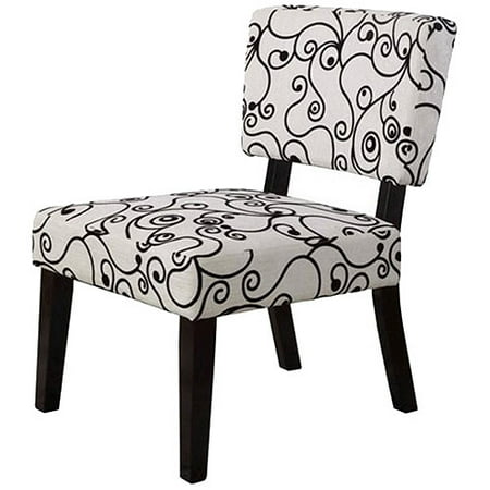 Linon Taylor Accent Chair, Black and White Circles: <ul> <li>White with Black Circles 100% Polyester Upholstered Chair</li> <li>Rich Black Finish Frame<br /></li> <li>No-sag, sinuous loop steel springs</li> <li>Sturdy hardwood frame construction</li> <li>Substantial, durable padding for long-lasting comfort</li> <li>Weight Limit: 250 lbs</li> <li>Foam density: 24KG/CUBE METER in seat and 20KG/CUBE METER in back</li> <li>Fabric Content: 100% poly</li> <li>Seat Dimensions: 17.5" Seat Height, 23"w x 22"d x 6" thick ; Chair Back Dimensions: 23"w x 17"h</li> <li>Dimensions: 23.13"w x 27.5"d x 34.25"h<br /></li> <li>Carton Dimensions: 31.65"w x 9.84"d x 23.23"h<br /></li> <li>Some assembly required<br /></li> <li>Sku: 36080BWC-01-KD-U</li> </ul>
