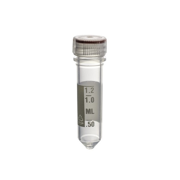 2.0ml Micrewtube with Flat Top O-Ring Screw Cap, Round Bottom, Printed Marking Area, Graduated, Sterile - 500/Case Tube made of polypropylene.Cap made of polyethylene. This series of tubes is also available either plain or with printed graduations and white marking area for sample identification. O-ring seal screw caps are unattached but incorporate a flat top which provides a writing surface. These flat surfaced tubes can be used with automatic capping machines in packaging industries. Closures are supplied in natural color. Perfect for cryogenic work. Can be centrifuged up to 17,000g. Will withstand temperatures from -196 C to +121 C. Certified RNase, DNase and Pyrogen safe. WARNING: Do not use Micrewtubes for storage in the liquid phase of liquid nitrogen. Such use may cause entrapment of liquefied nitrogen inside the vial and lead to pressure build-up resulting in possible explosion or biohazard release. Use appropriate safety procedures when handling and disposing of vials. Product photo may not exactly match the product offered for sale. Please refer to the product description.