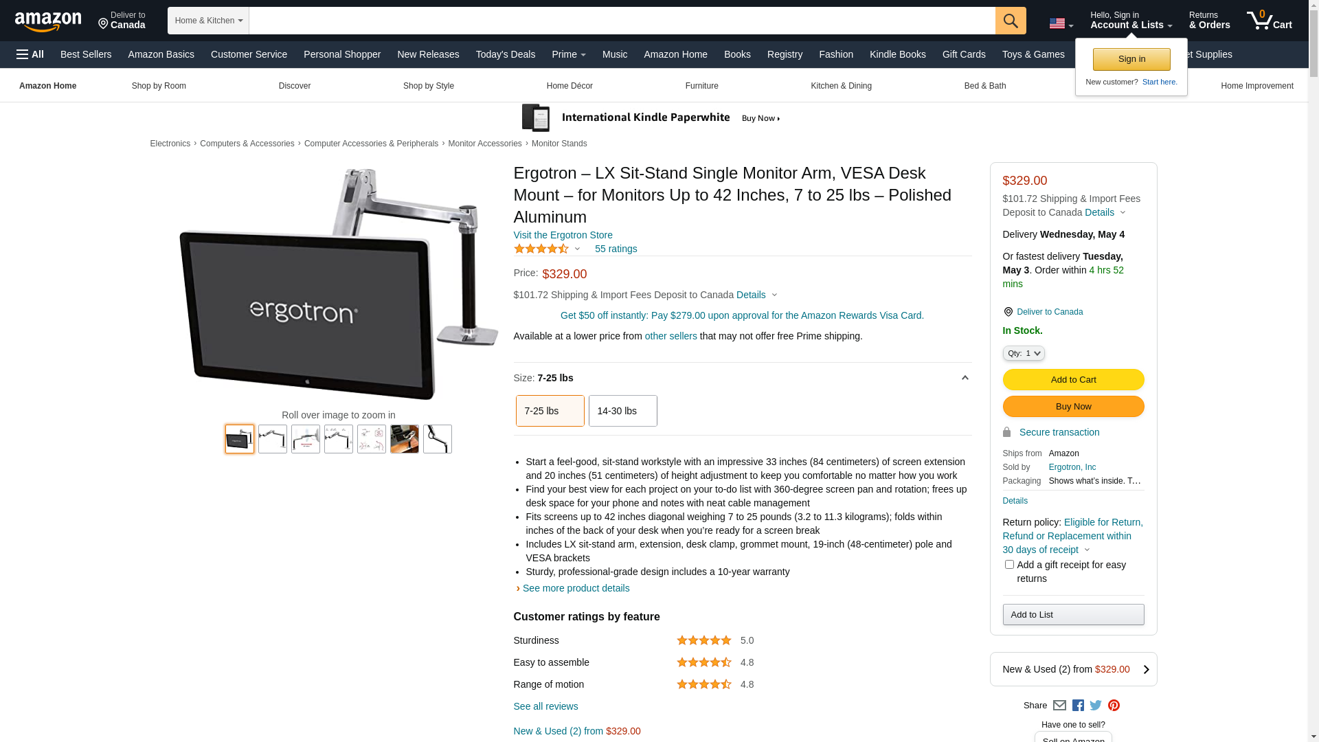 Ergotron – LX Sit-Stand Single Monitor Arm, VESA Desk Mount – for Monitors Up to 42 Inches, 7 to 25 lbs – Polished Aluminum