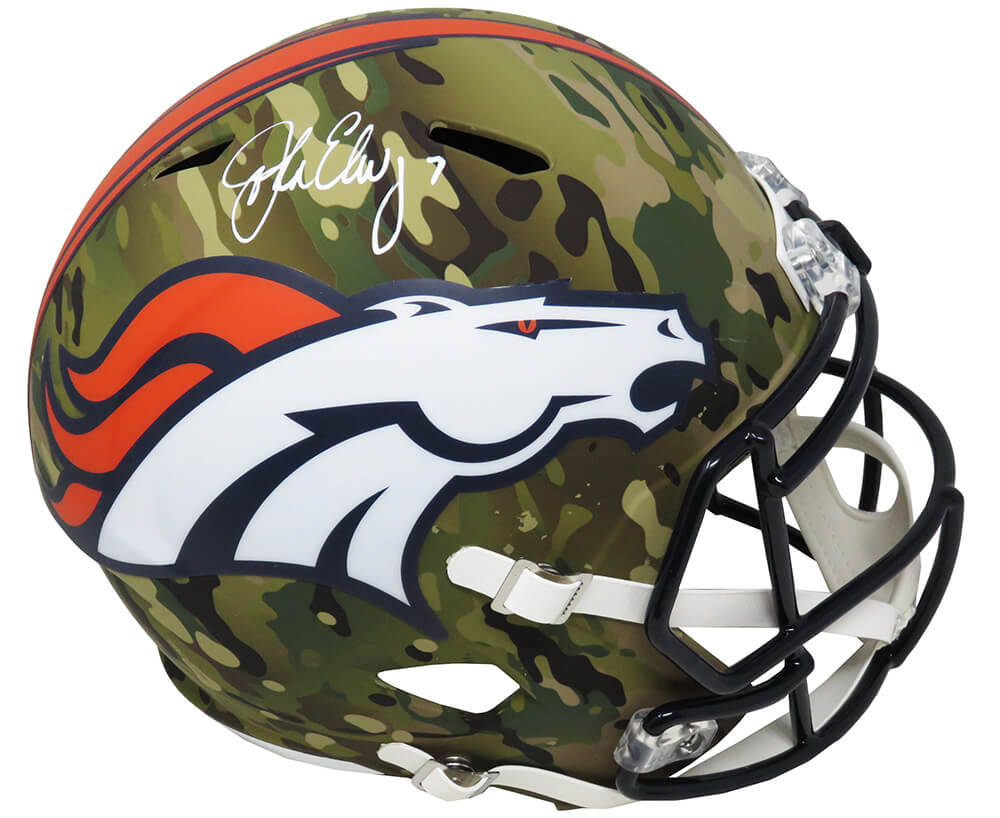 Schwartz Sports Memorabilia ELWREP307 John Elway Signed Denver Broncos CAMO Riddell Full Size Speed Replica NFL Helmet