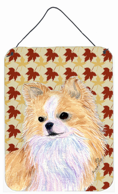 Carolines Treasures SS4383DS1216 Chihuahua Fall Leaves Portrait Aluminium Metal Wall Or Door Hanging Prints - 12 x 16 in