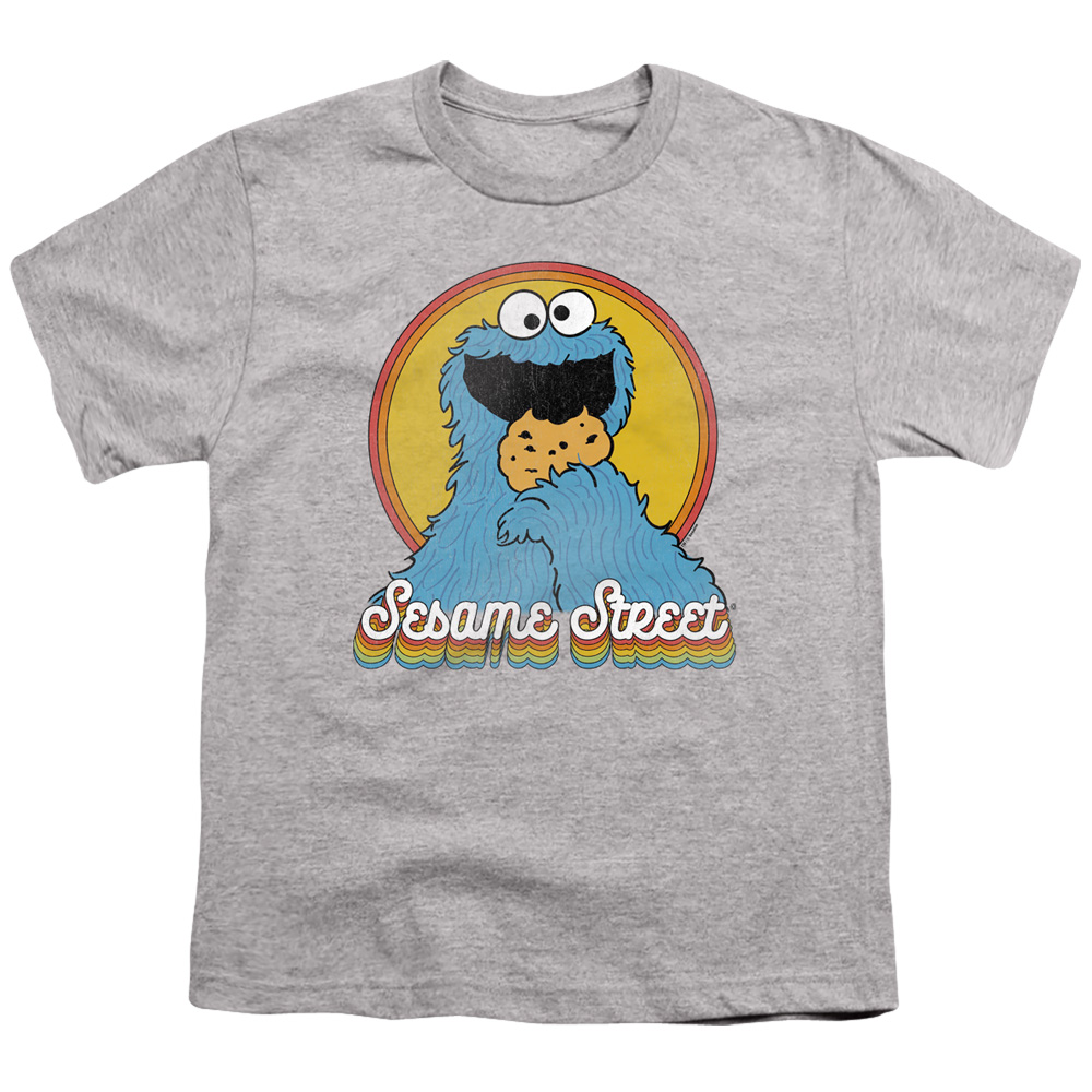 Trevco SST267-YT-1 Sesame Street & Cookie Monster Layers-Short Sleeve Youth 18-1 T-Shirt, Athletic Heather - Small