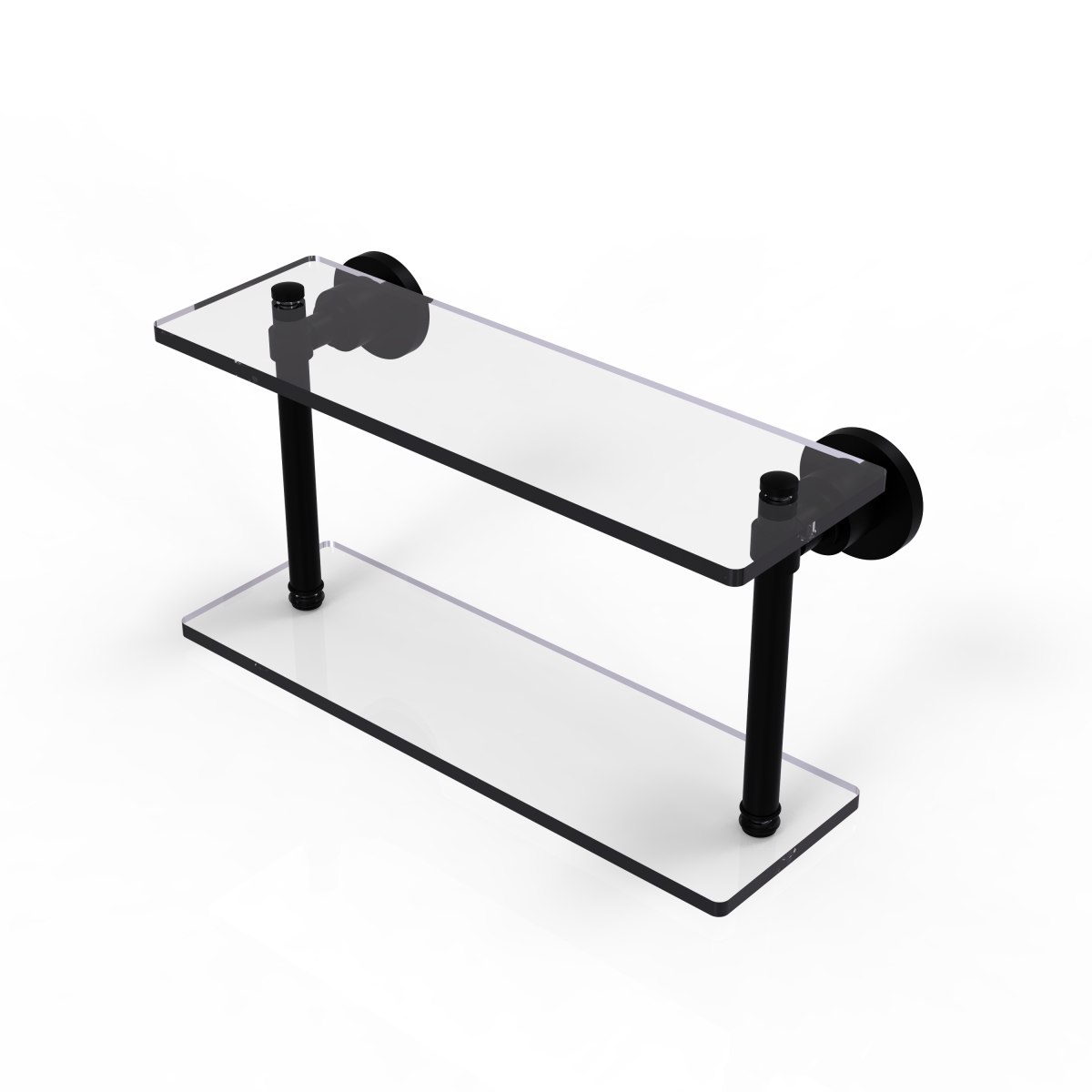 Allied Brass WS-2/16 Washing Square Collection 16 Inch Two Tiered Glass Shelf, Matte Black