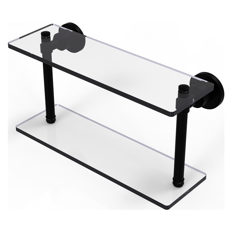 ALLIED BRASS WS-2/16-BKM WASHINGTON SQUARE 16 INCH TWO TIERED GLASS SHELF, MATTE BLACK