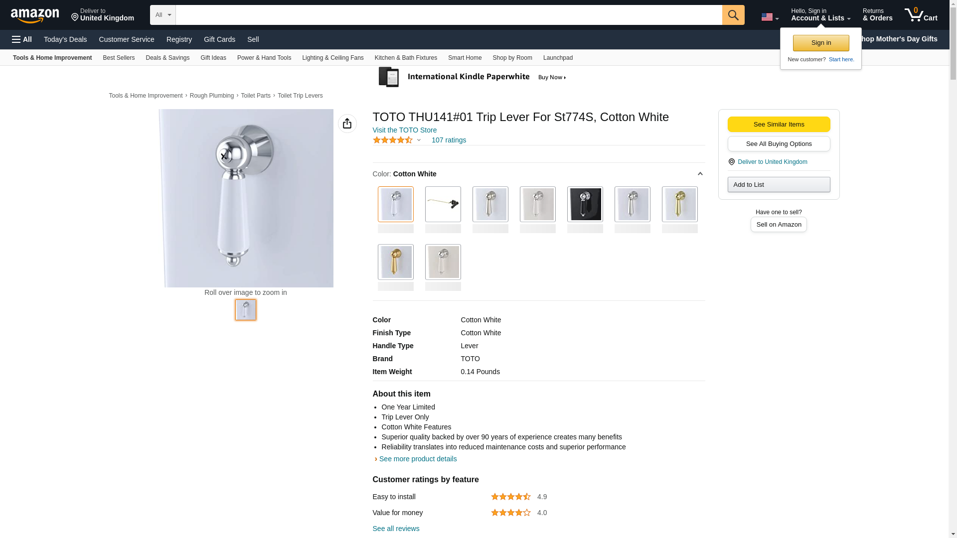 TOTO THU141#01 Trip Lever For St774S, Cotton White