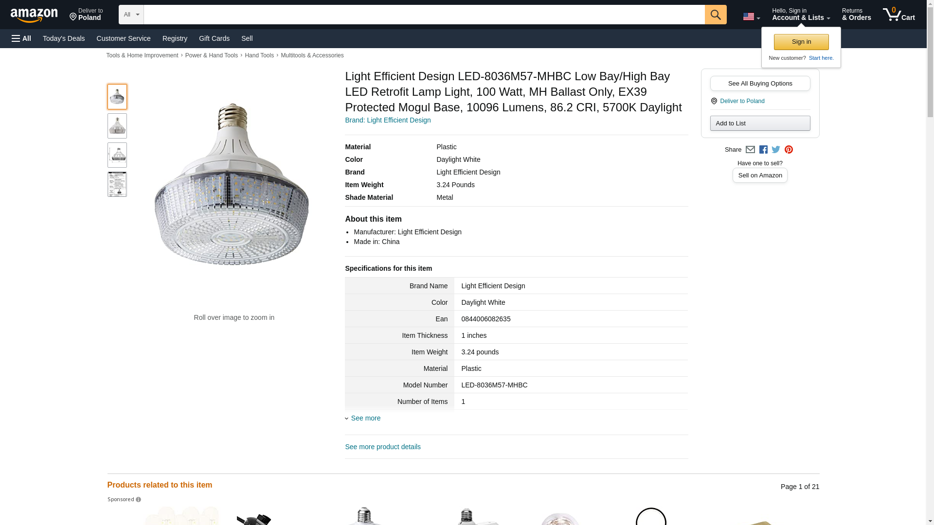 ![]() beeslighting.com | LED-8036M57-MHBC | 1 | 1 | 1 | 1 @ $84.97 |