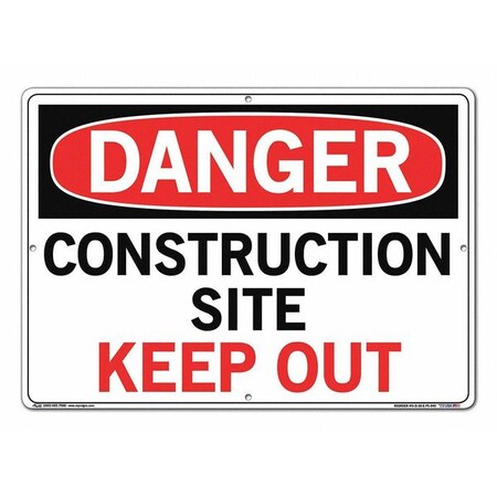 Vestil SI-D-38-E-PS-040 CONSTRUCTION SITE KEEP OUT Danger Sign, Polystyrene, 0.040" Overall Size, 20.5" W x 14.5" H
