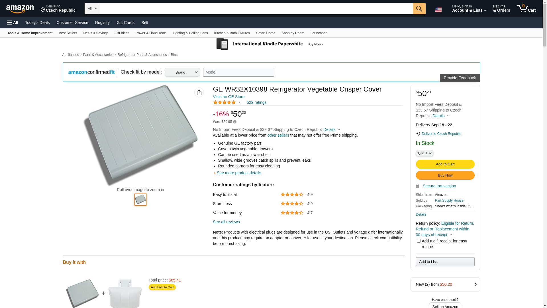 ![]() midwestapplianceparts.com | WR32X10398-GEH-P | 1 | -2 | 1 | 1 @ $58.79 |
