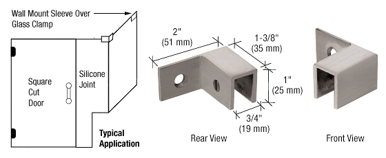 C.R. LAURENCE S0GC37RBN CRL Brushed Nickel Right Hand "Sleeve Over" Wall Mount Glass Clamp. CRL Sleeve Over Glass Clamps are designed to provide a mechanical fastener to cover the shear forces placed on the glass panels. No special fabrication of the glass is required. Can also be used to secure the glass panels in position while the applied silicone sealant in the joint cures (the silicone sealant glues the glass panels together, prevents water leakage, and provides the pull strength to keep the panels from separating). Clamps are secured in place by nylon tipped Allen set screws.. Part Numbers Variations: S0GC37RBN