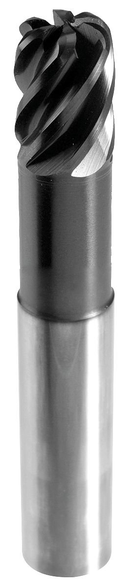 Routing End Mill Titanium Finisher Medium Length Necked High Performance Number of Flutes 6 Single End Corner Radius End Style Center Cutting Type Right Hand Cut Carbide AlTiN Finish Dia 3/8 In Shank Dia 3/8 In Length of Cut 1/2 In Overall Length 4 In Neck Dia 0.355 In Neck Length 2 5/8 In Cut Angle 40 Deg Helix Angle 40 Deg Radius 0.0300 In For Machining Aerospace Materials Stainless Steels Nickel-Based Alloys And Titanium Alloys