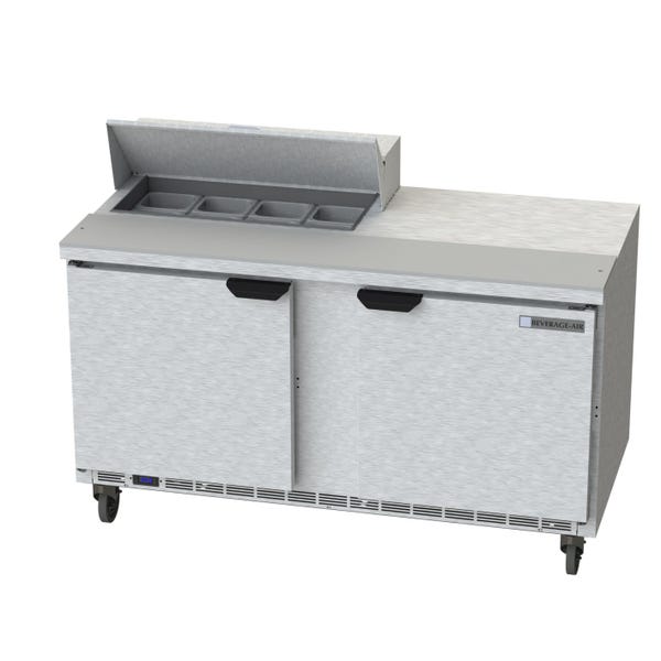 Beverage-Air SPE60HC-08 60" 2-Door Refrigerated Sandwich Prep Table | (8) 1/6 Pan Sandwich Top Refrigerated Counter, two-section, 60"W, 16.02 cu. ft. capacity, (2) doors, stainless steel top with opening for (8) 1/6 size pans, 10" cuttin